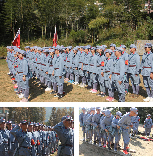 体验式培训环节,大家统一身穿红军装,从成立指挥领导小组到分队拉练,在教官的带领下分别进行了队列训练、齐心协力走等项目。大家以饱满的热情、严谨的态度,互相帮助,同心协力完成了一项项挑战任务。