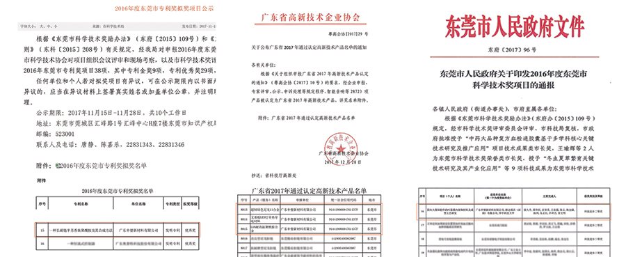 就在早些时候,九游老哥J9俱乐部官网的“一种长碳链半芳香族聚酰胺及其合成方法”荣获东莞市专利优秀奖;“面向大型深腔件的PC?基模内装饰材料及成型工艺研发”?项目荣获东莞市科技进步二等奖。据了解,这些认证和奖项都是科技界含金量十足的政府性项目。